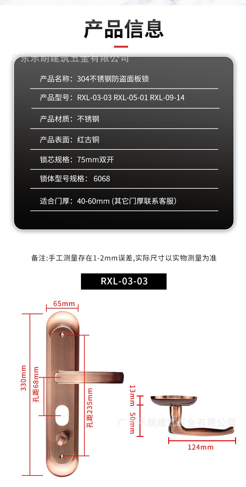 RXL-03-03 红古铜不锈钢304入户防盗面板锁