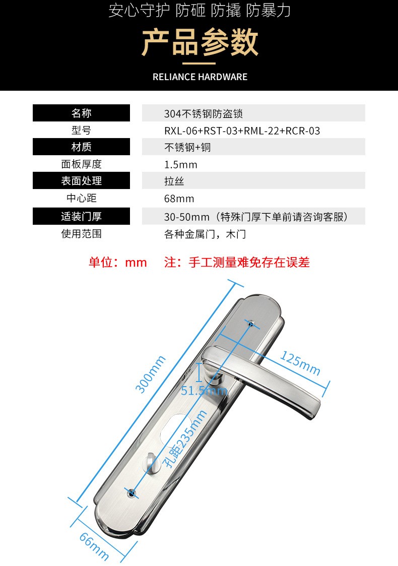 RXL-06-03 不锈钢加厚面板大门锁